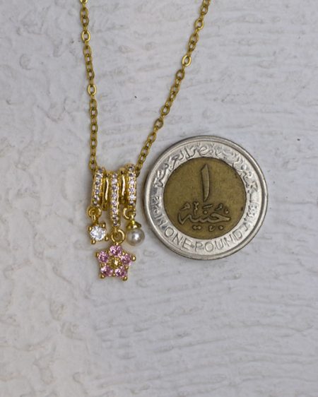SKU: n1932pink struas flower gold necklace 130 EGPإضافة إلى السلة
