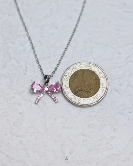 SKU: n1995crystal pink tie silver necklace 110 EGPإضافة إلى السلة