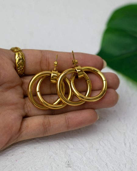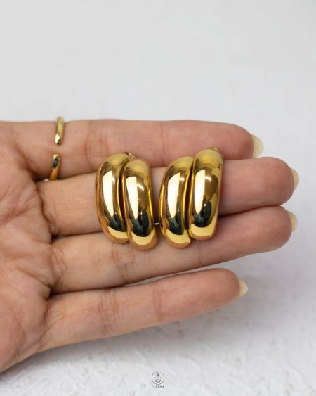 مجموعه حلقان تتكون من 3 ازواج دهب صيني بتصميم ممتاز تناسب كل الاطلالات