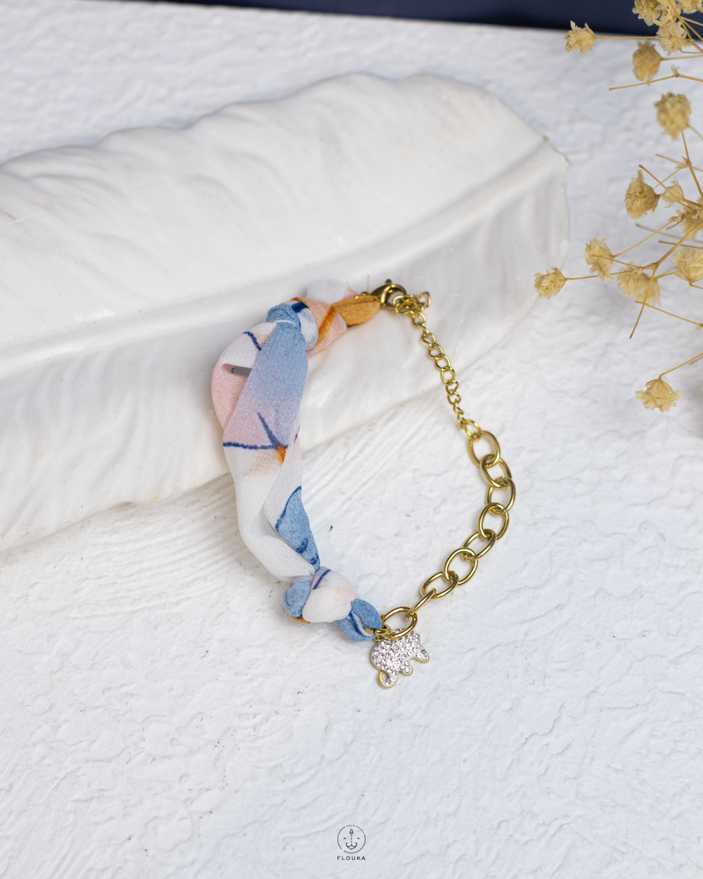 Be the first to review “baby blue fabric gold bracelet”