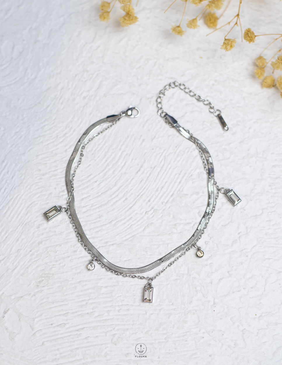 Be the first to review “double layer crystal silver snake ankelet”