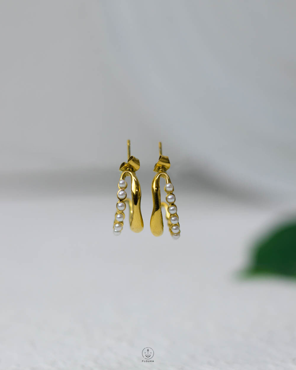 double layer white beads & gold earrings