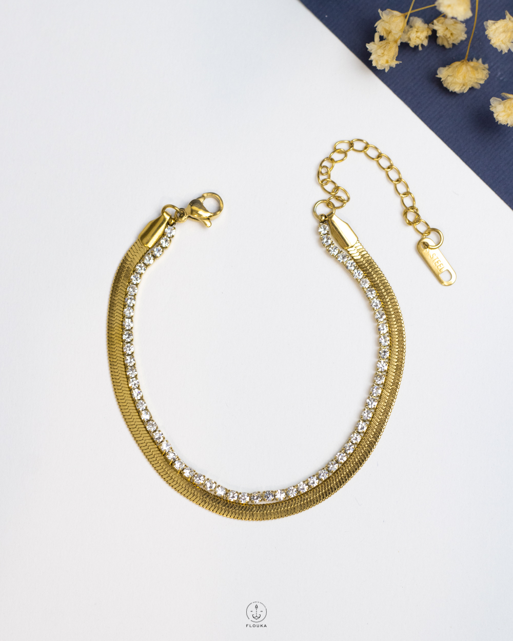 double layer white tennis gold snake bracelet