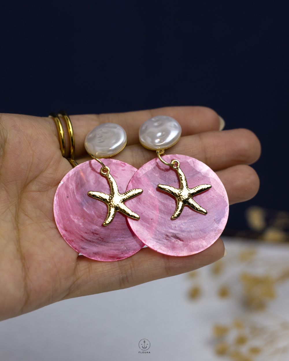 Be the first to review “Fuchsia Acrylic gold seastar earring”