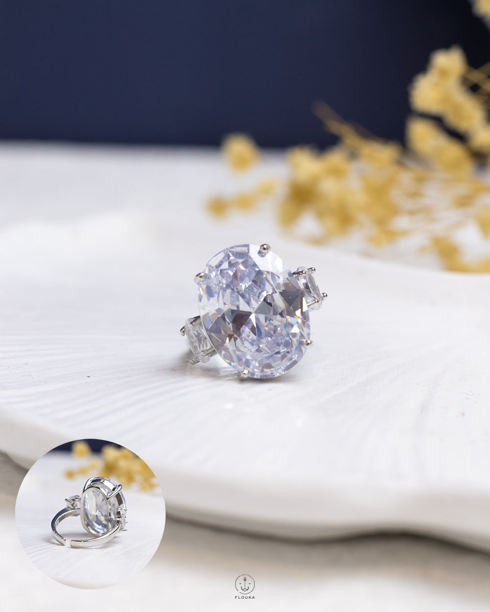 خاتم جورجينا متوفر بخامه ذهب صيني طلاء عالي الجوده – حجر زيركون اصلي ، الخاتم فري سايز نازل بمقاس ٨