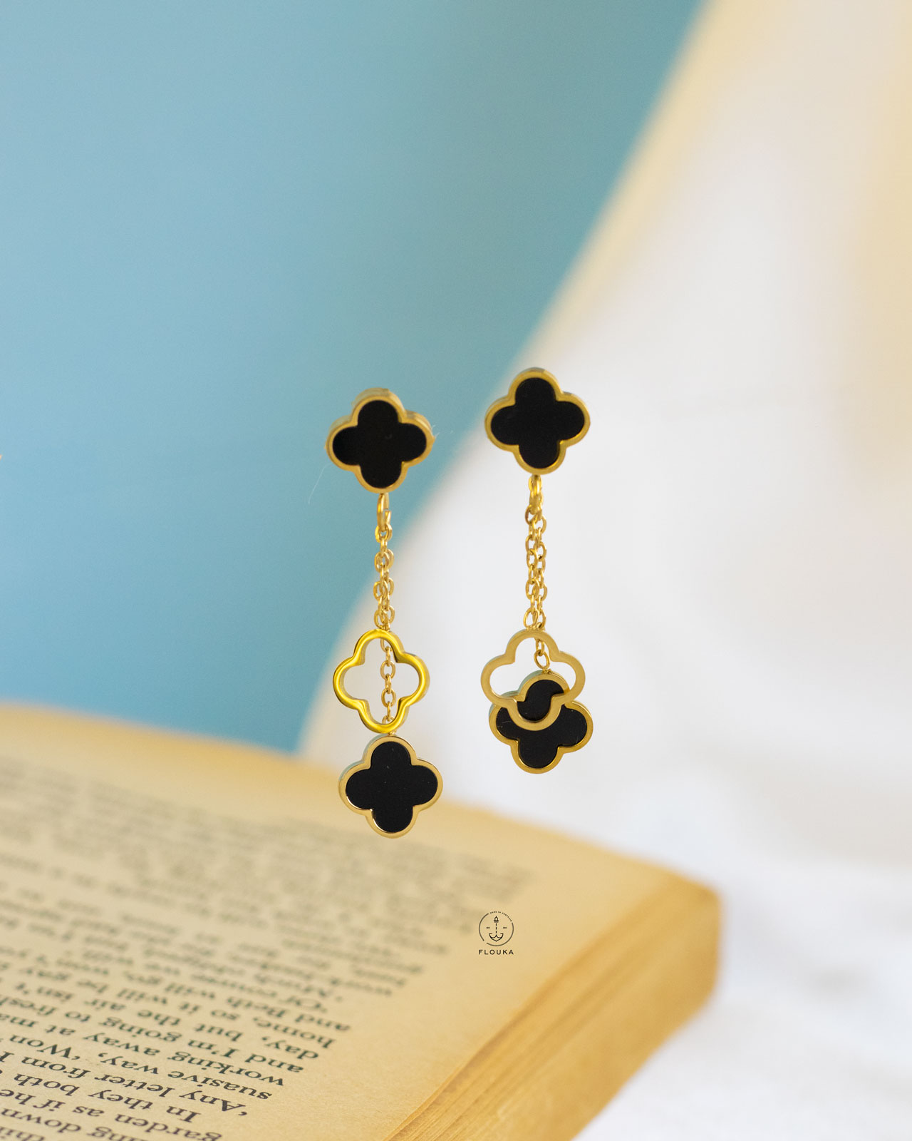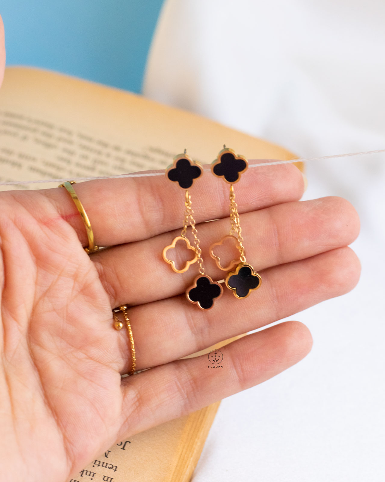 gold black flower earrings