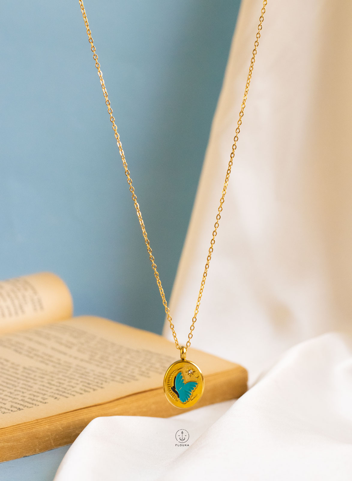 gold butterfly paint necklace