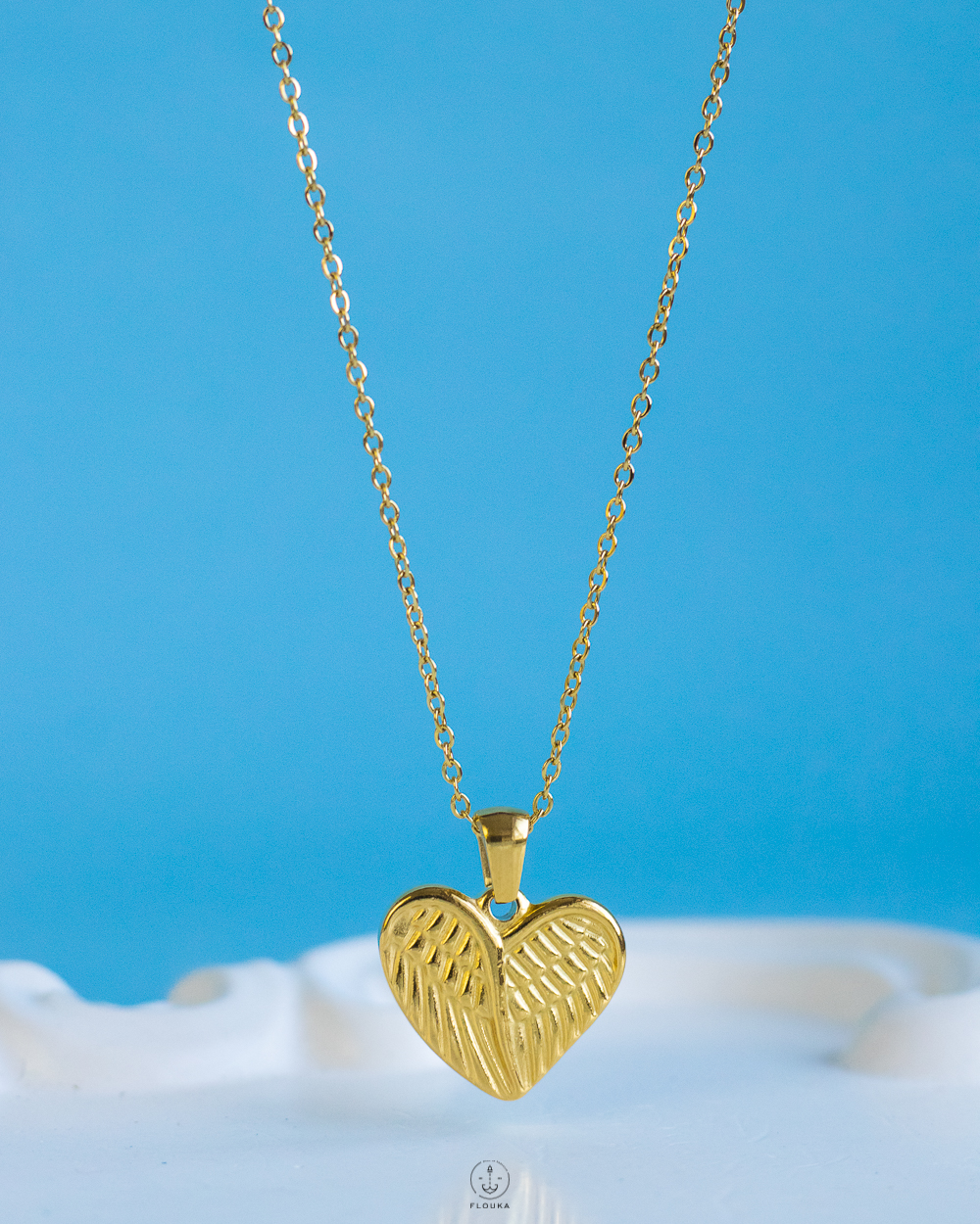 gold heart wing necklace