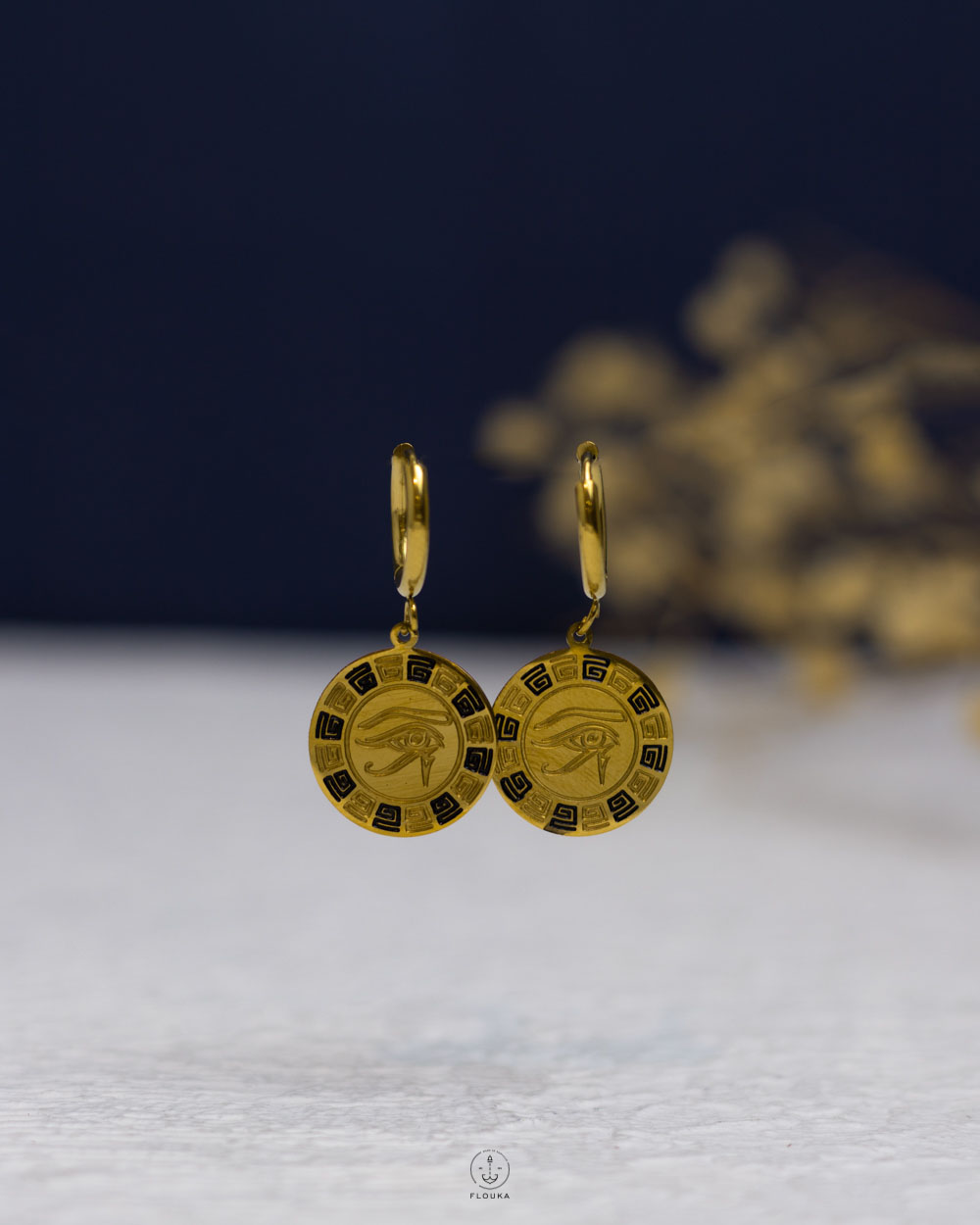 gold houras eye earrings