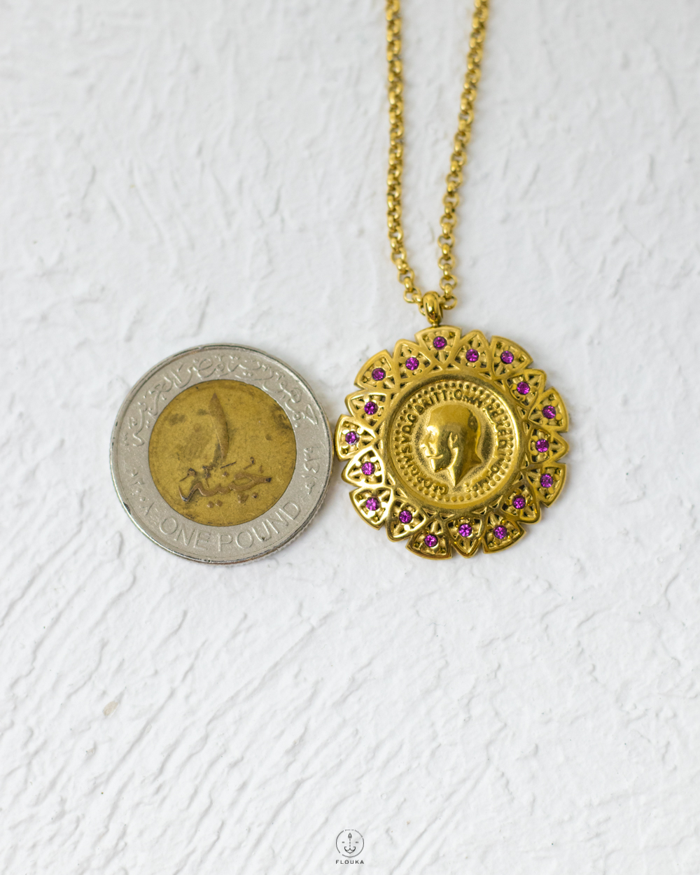 gold purple straus coin necklace