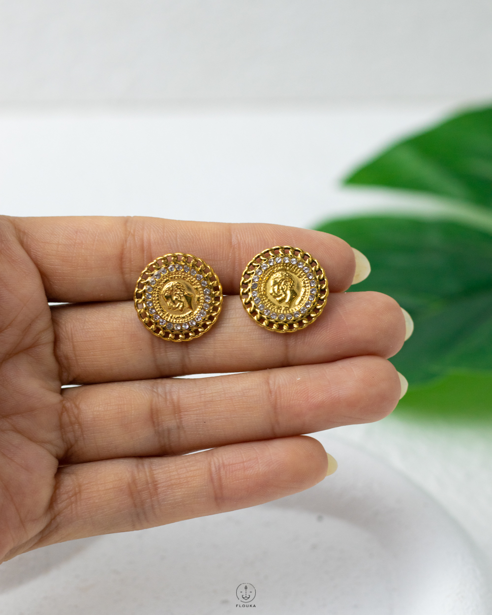 gold straus coin earrings