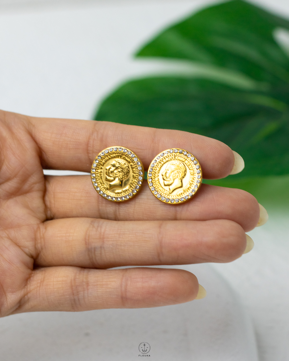 gold straus coin earrings