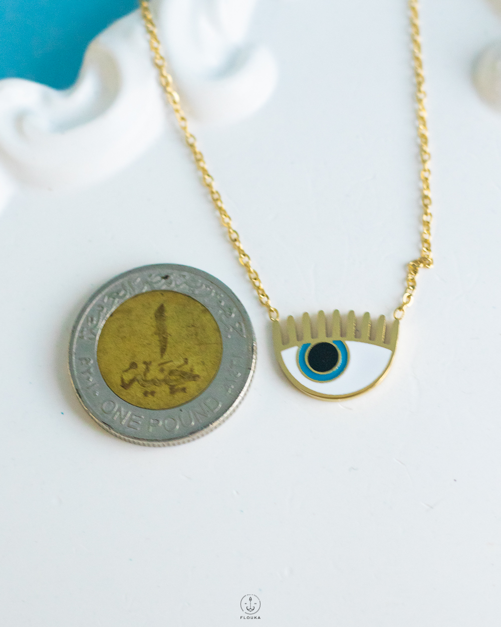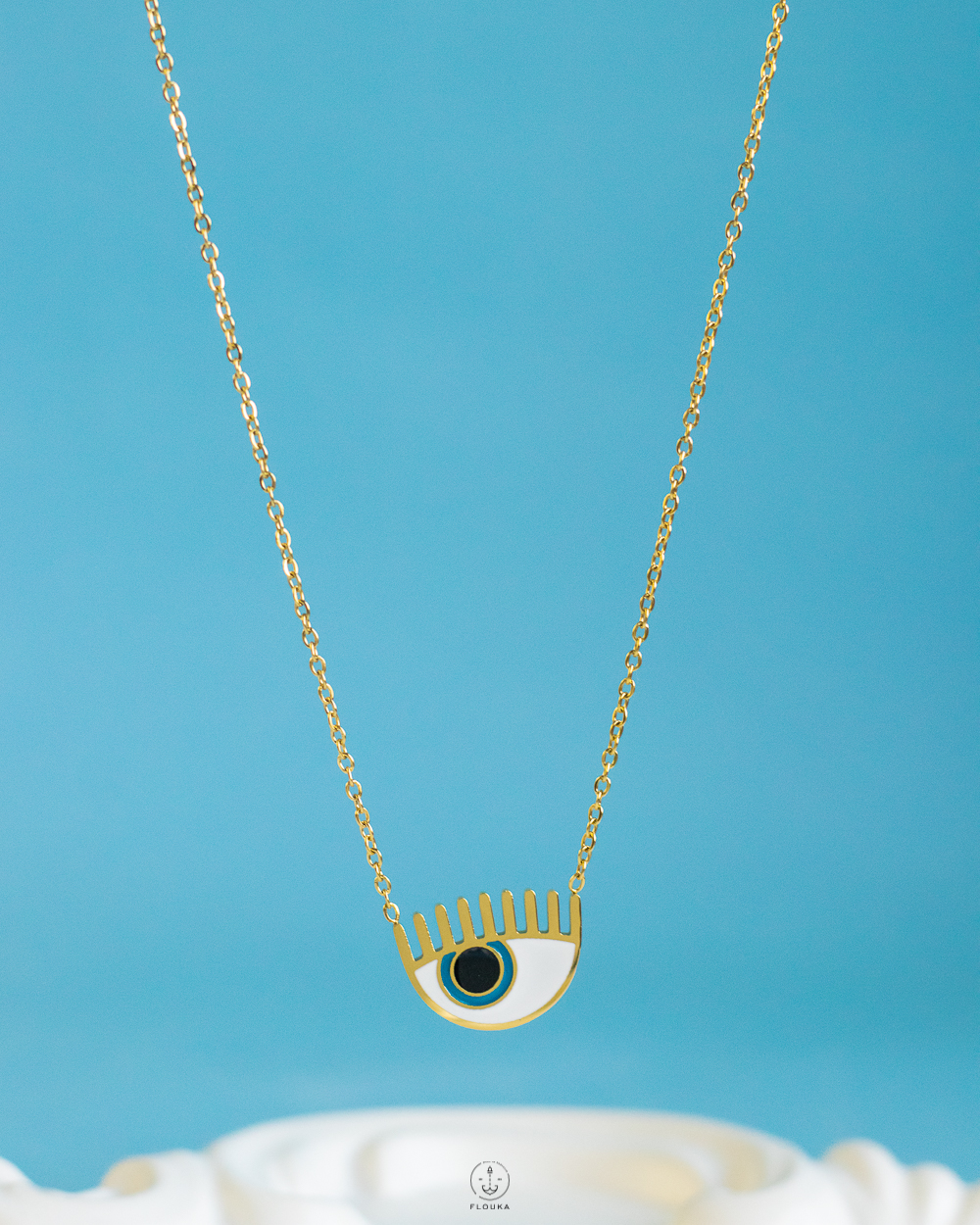 gold white eye necklace