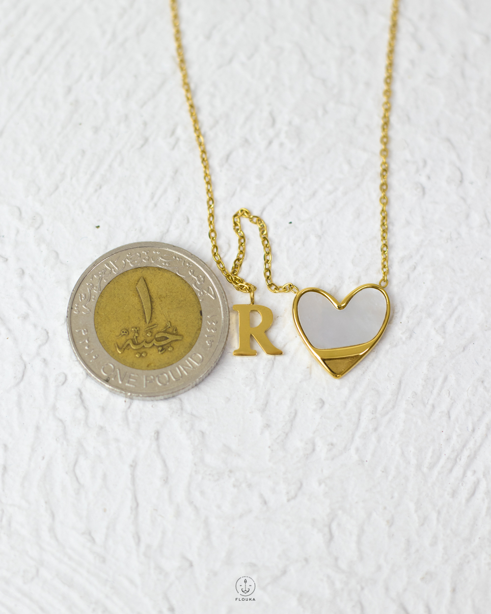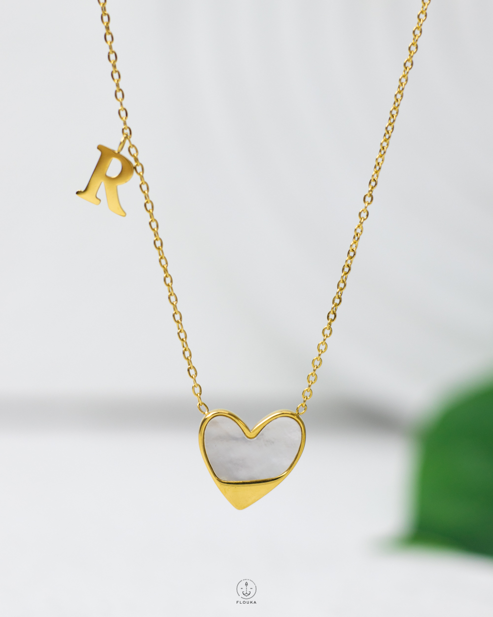 litter R gold heart necklace