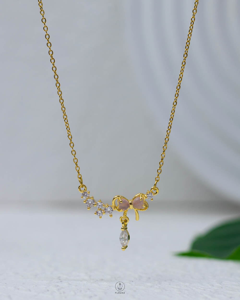 mix rose and white strus silver necklace