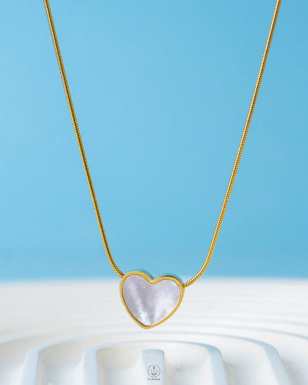 سلسله استانلس ضد المياه بحجر صدف طبيعي متوفره بطول 40+5 سم تطويله