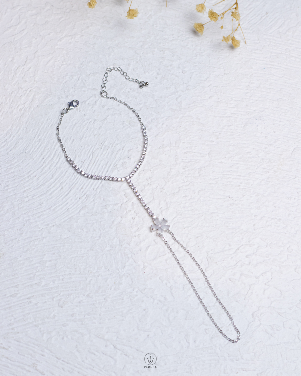 Be the first to review “silver flower tennis hand chain bracelet”