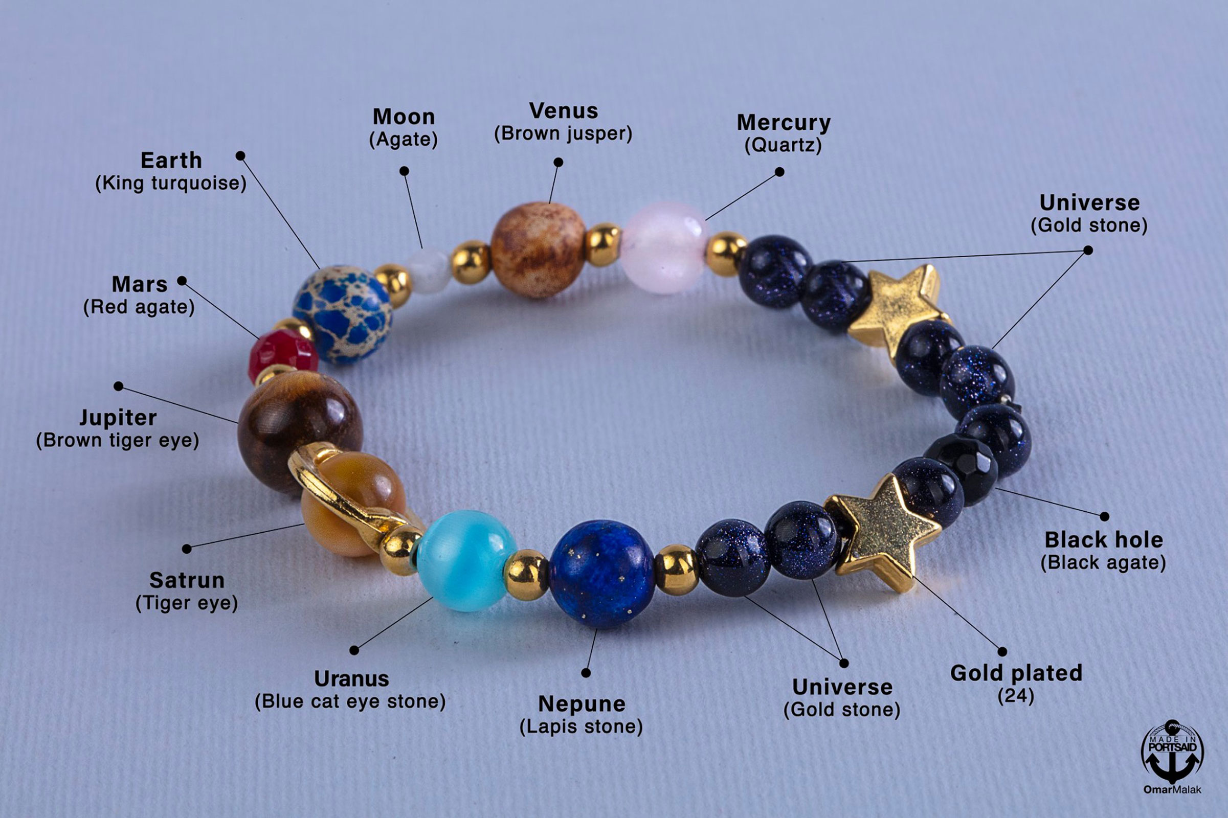 اسوره كواكب ب الاحجار الطبيعيه و بفواصل مطليه ذهب
