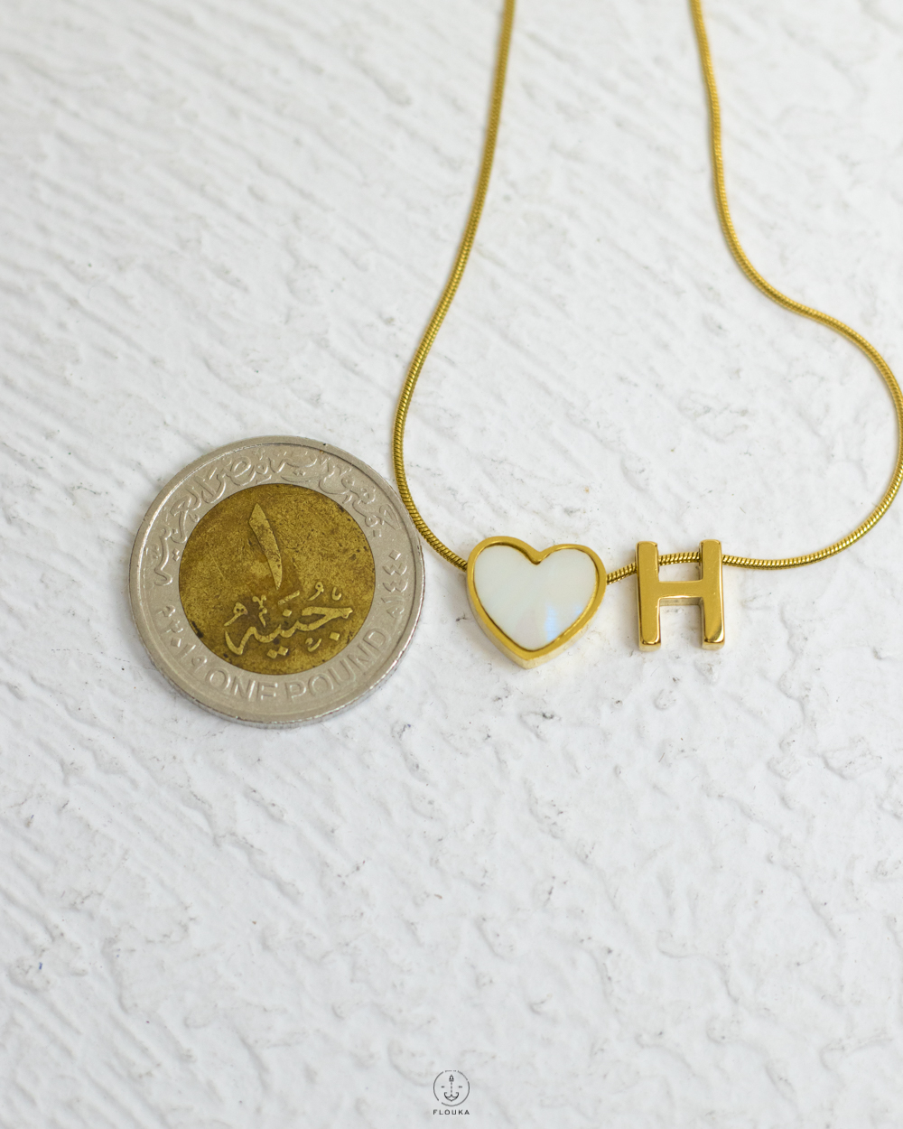 thin white heart letter H necklace