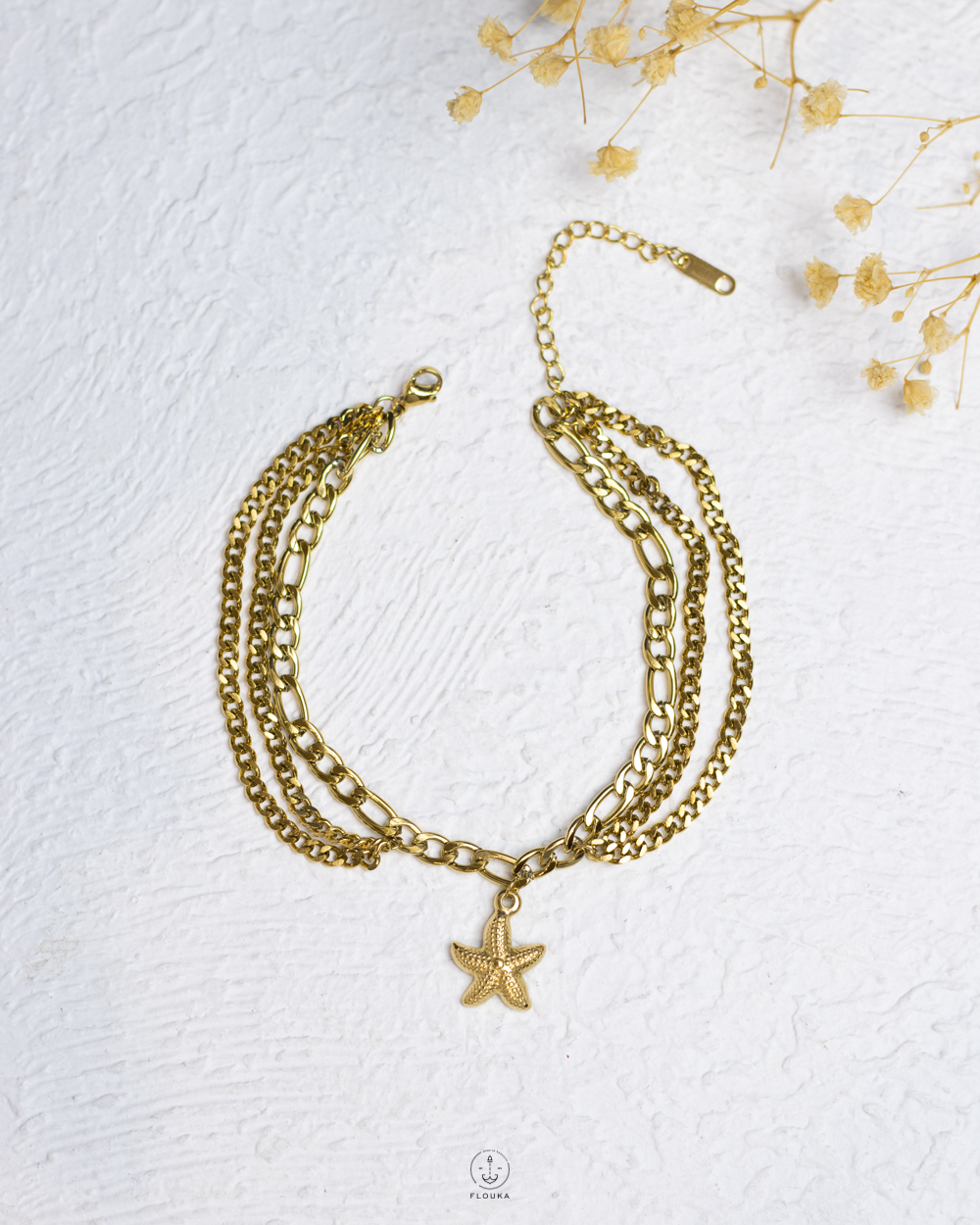 triple layer gold figaro seastar anklet