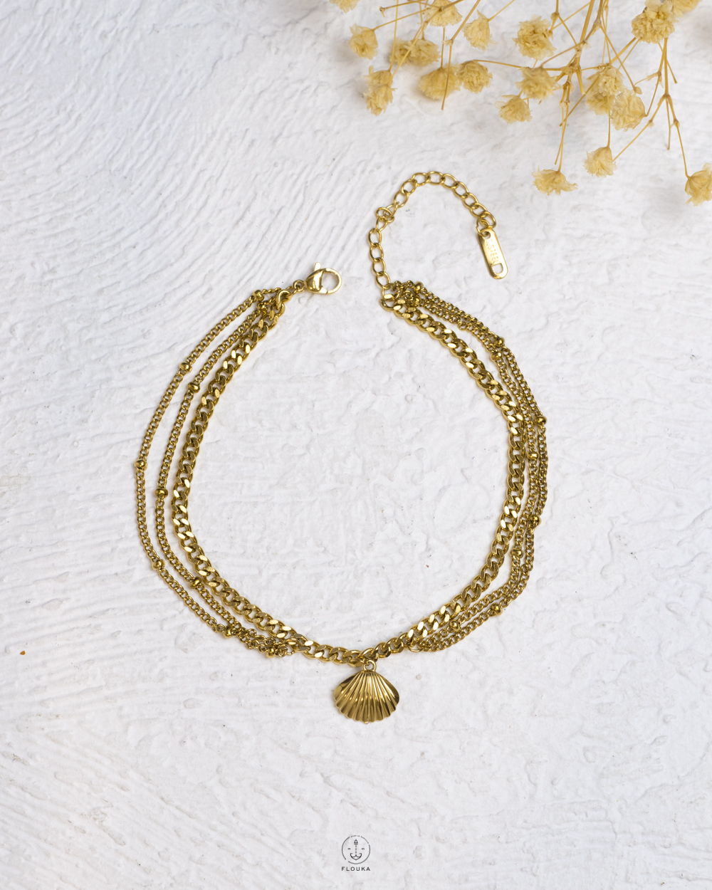 triple layer gold seashell anklet